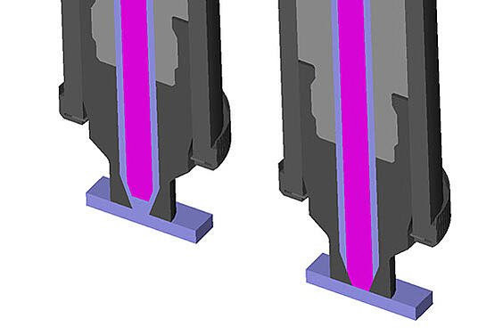 When the valve is set back, the molten material flows into the crate freely. When the pin is set to forward, the store entry point is shut down completely. This gives the user the ultimate control that’s better and more refined than the other gates. It can therefore be used for larger gate sizes for large molded parts.