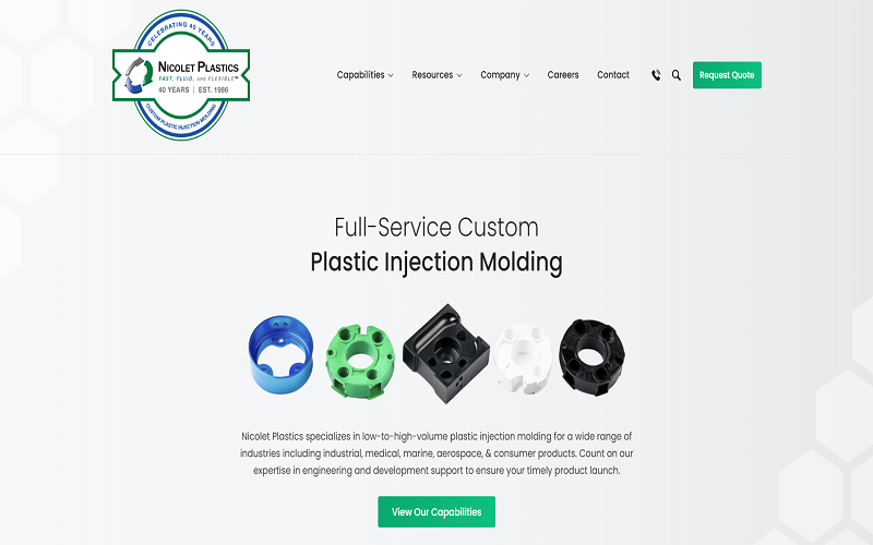 Established in 1986, Nicolet Plastics is a USA injection molding company with two modern facilities in Wisconsin. They offer plastic injection molding services for small to large volumes across various industries.